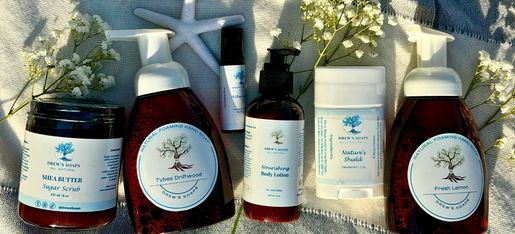 Indulge in natural soaps and body care made in small batches to nourish your skin and calm the senses with Drew’s Soaps!